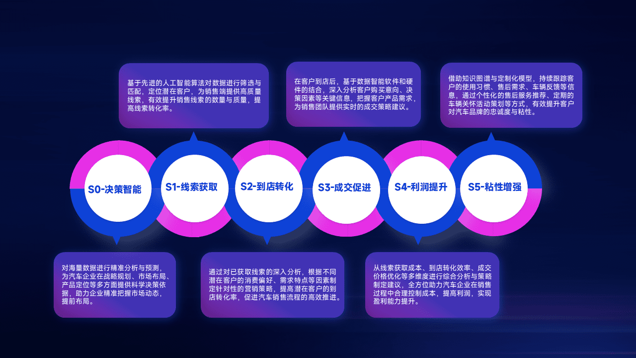 通过拓宽潜在客户来源、、优化线索分配并提高到店转化率,,,,以增强销售效率。。。同时,,,,利用线索数据不断优化分析模型,,有效提升转化率,,扩大营销影响力。。